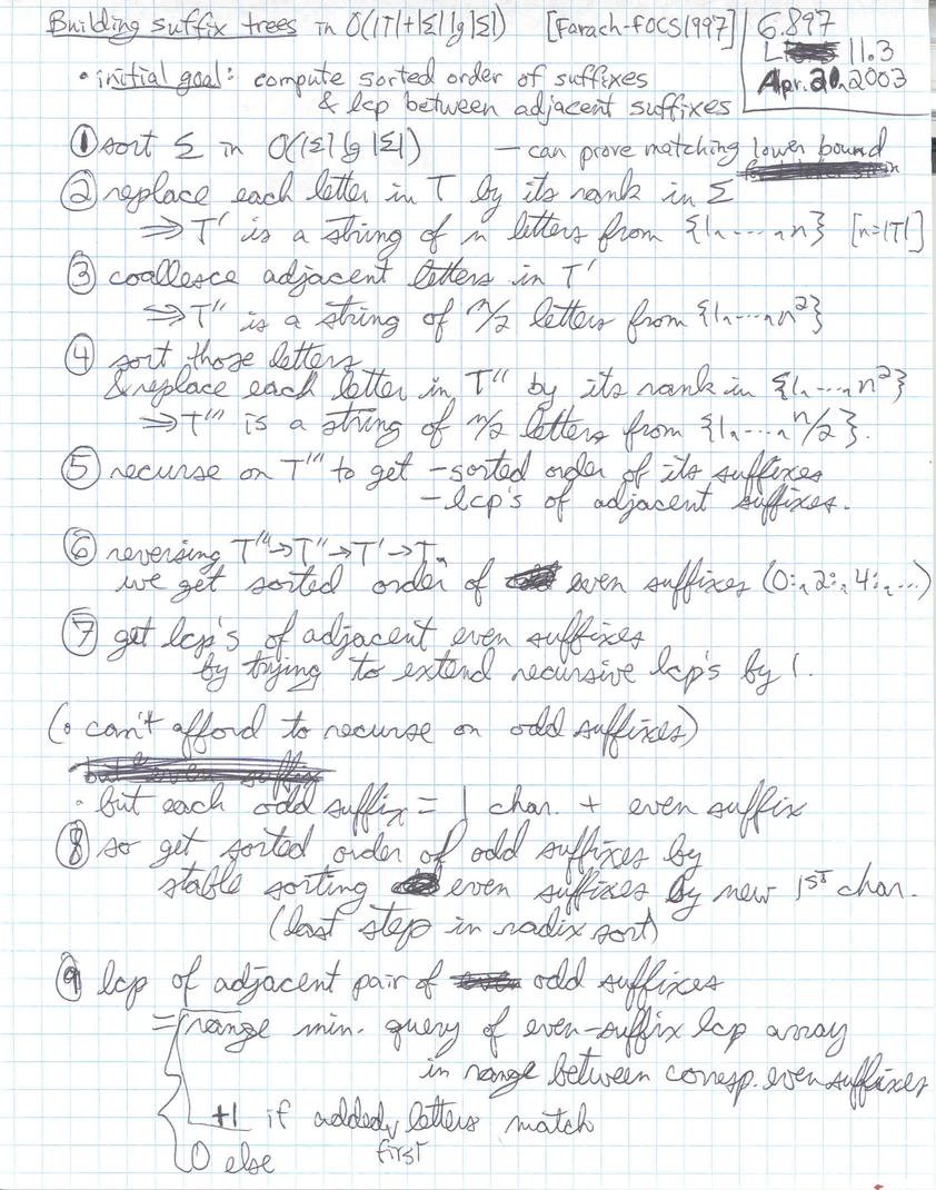 These are rough, personal lecture notes handwritten by Erik Demaine used during lecture. Their primary purpose is for reading/review by students before the scribe notes (which are more complete) become available. See the scribe notes page. Accessibility