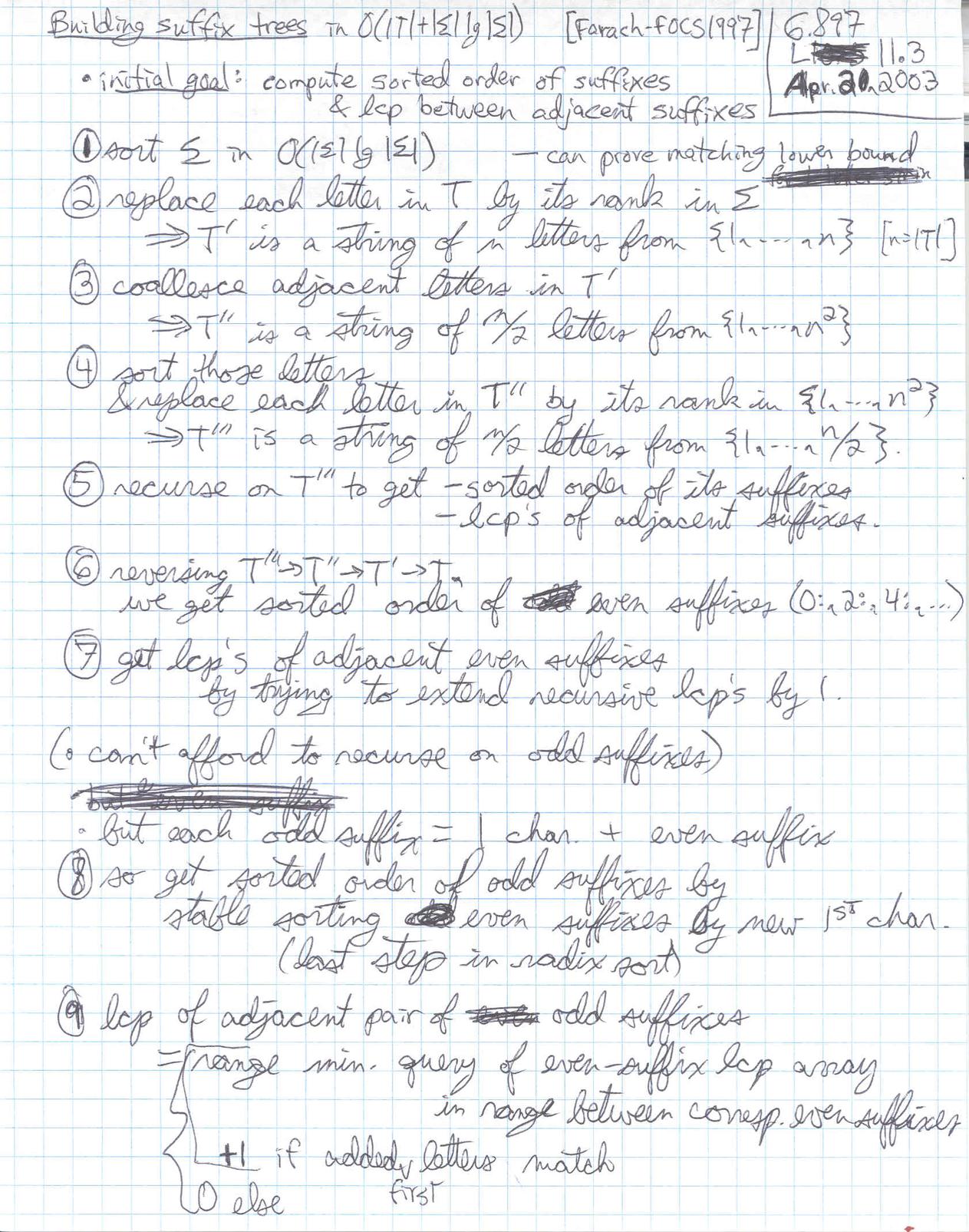 These are rough, personal lecture notes handwritten by Erik Demaine used during lecture. Their primary purpose is for reading/review by students before the scribe notes (which are more complete) become available. See the scribe notes page. Accessibility