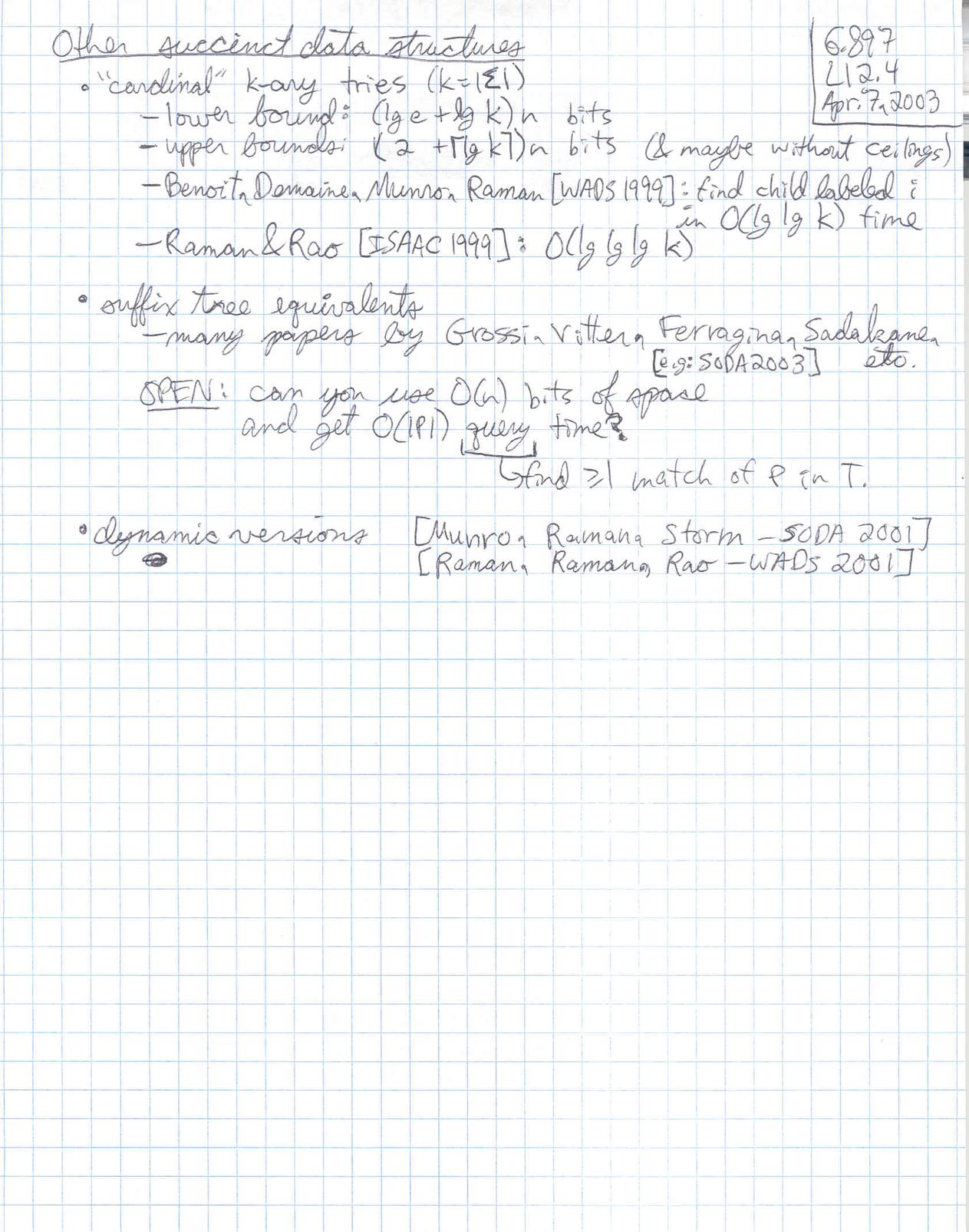 6.897: Advanced Data Structures (Spring 2003)