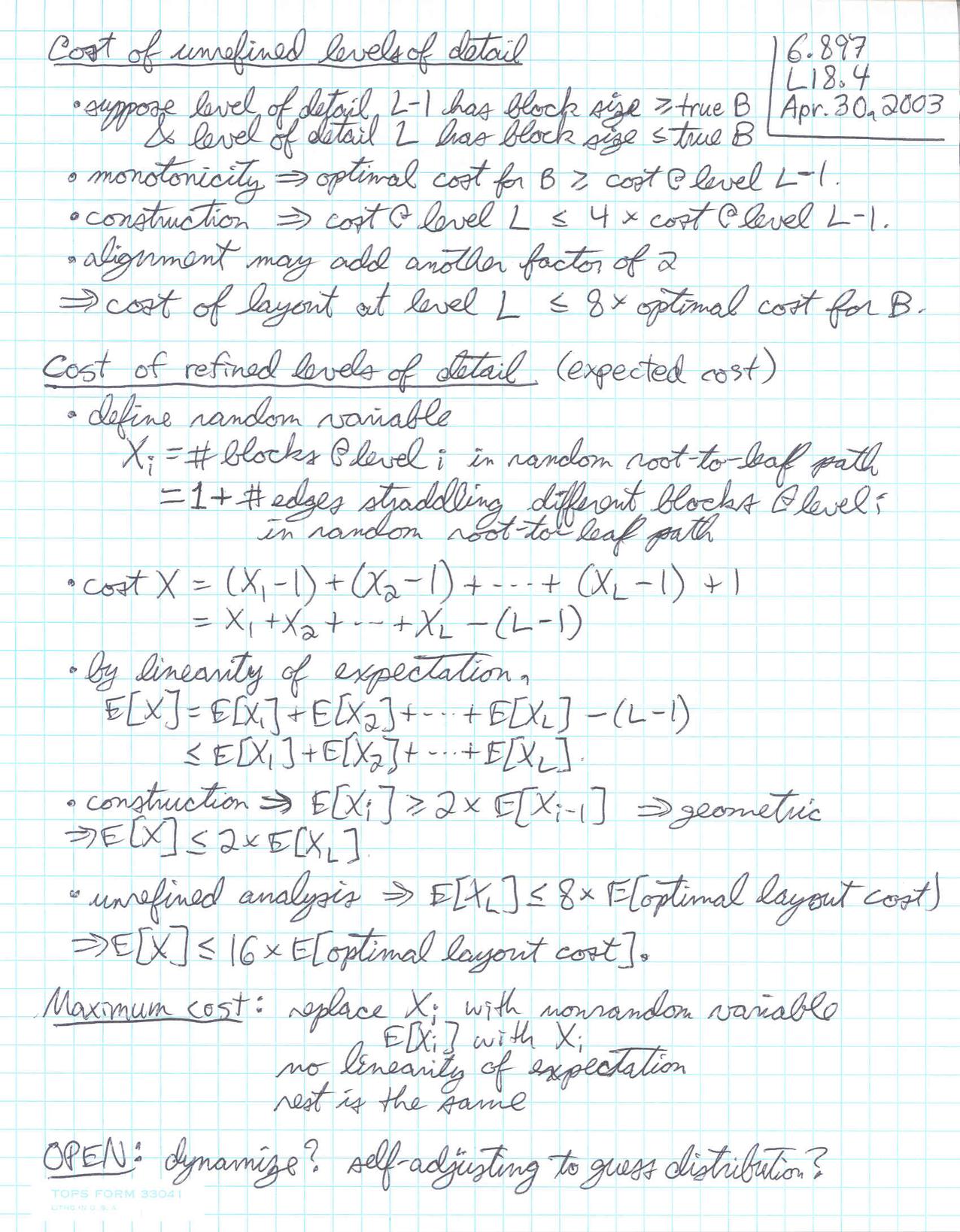 These are rough, personal lecture notes handwritten by Erik Demaine used during lecture. Their primary purpose is for reading/review by students before the scribe notes (which are more complete) become available. See the scribe notes page. Accessibility