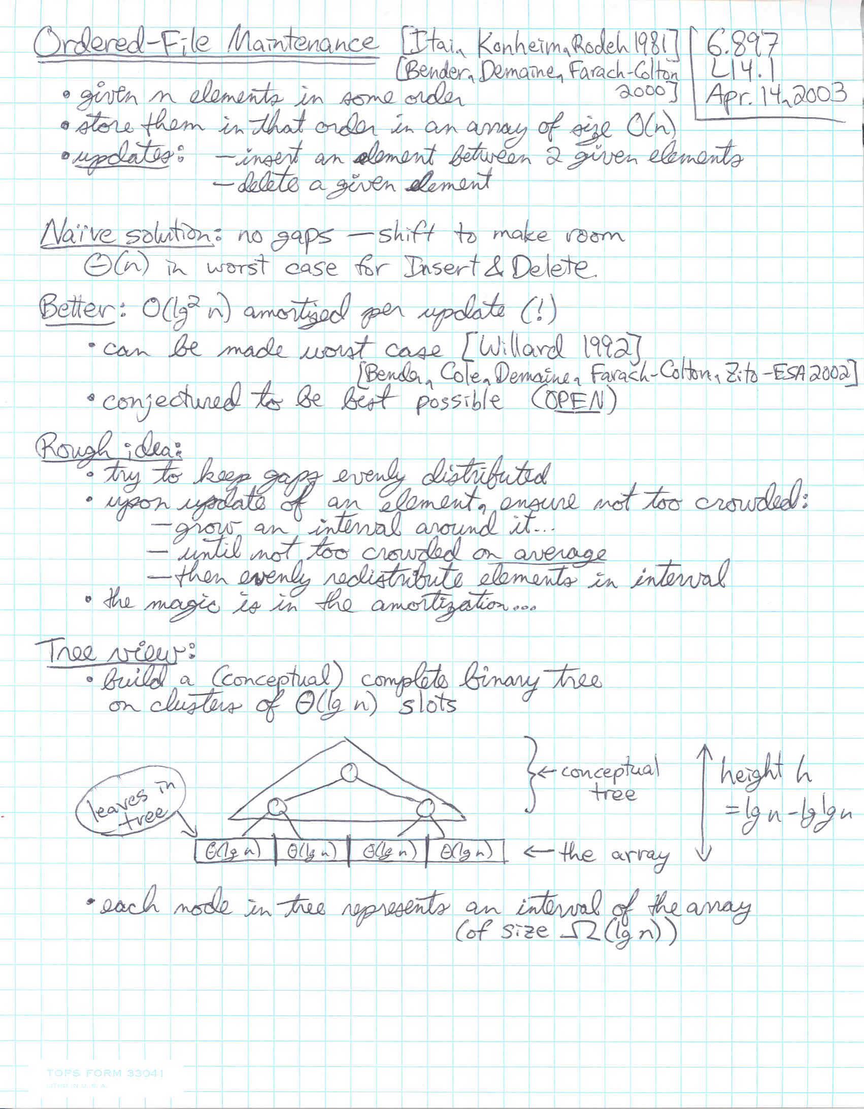 These are rough, personal lecture notes handwritten by Erik Demaine used during lecture. Their primary purpose is for reading/review by students before the scribe notes (which are more complete) become available. See the scribe notes page. Accessibility