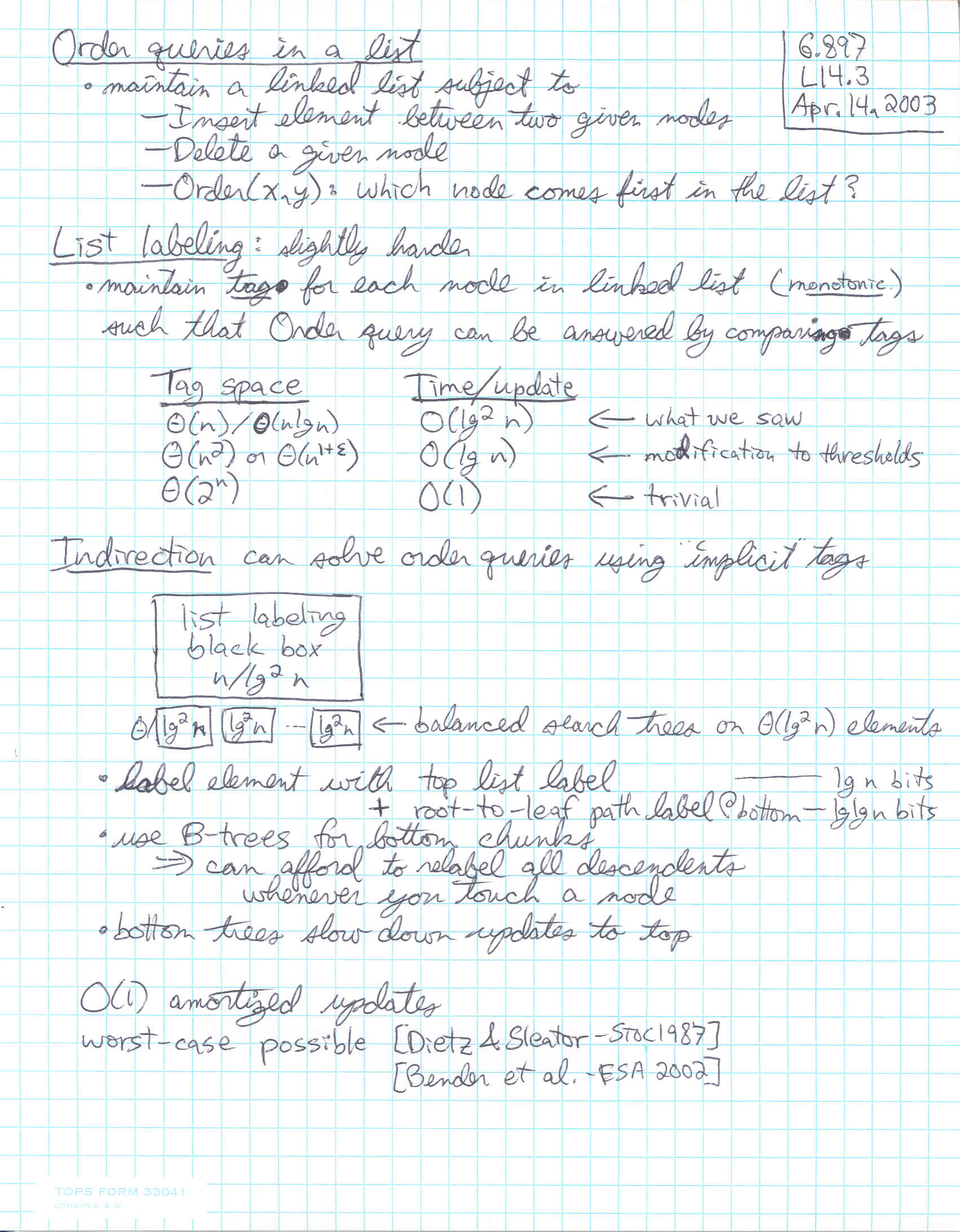 6.897: Advanced Data Structures (Spring 2003)