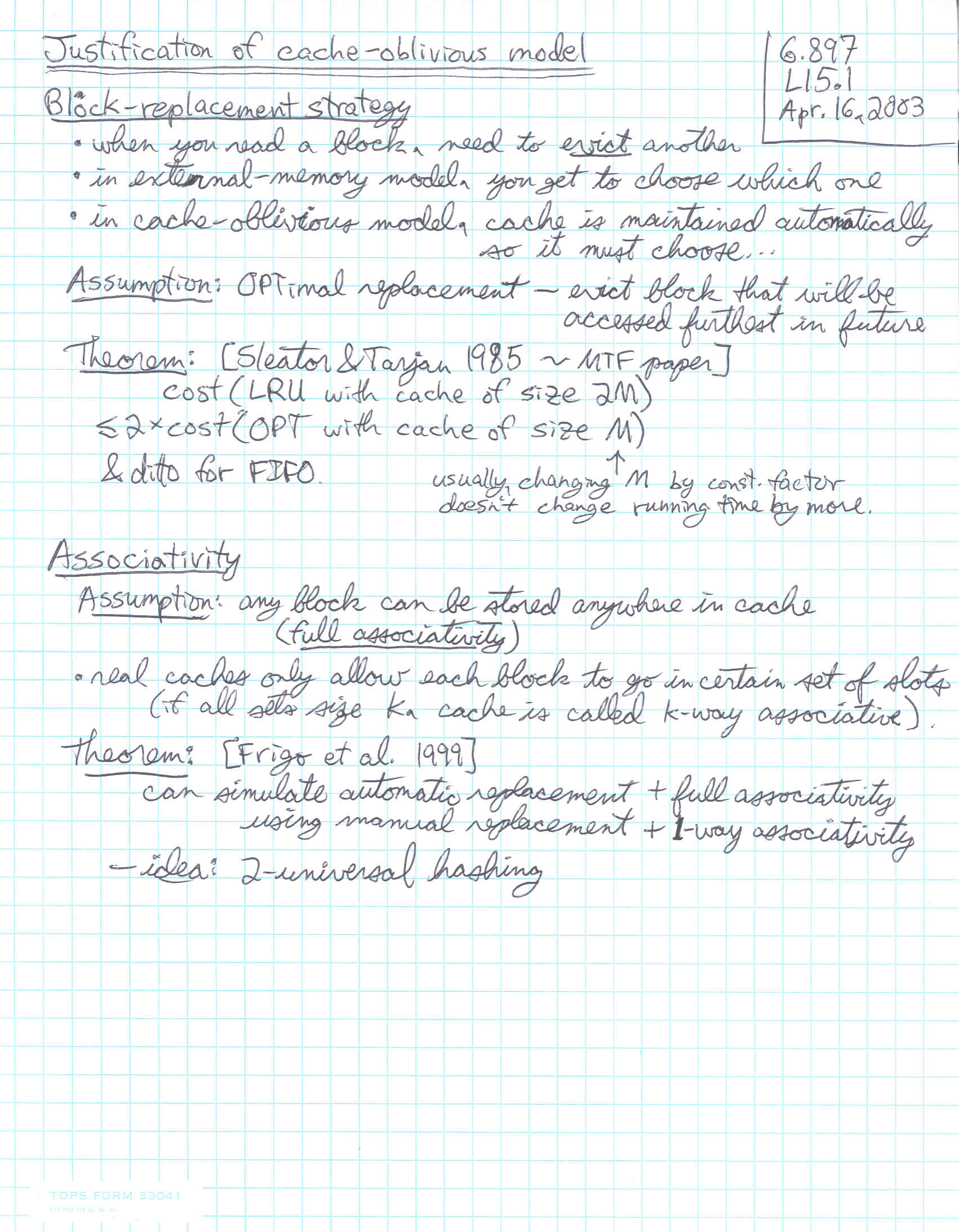 These are rough, personal lecture notes handwritten by Erik Demaine used during lecture. Their primary purpose is for reading/review by students before the scribe notes (which are more complete) become available. See the scribe notes page. Accessibility