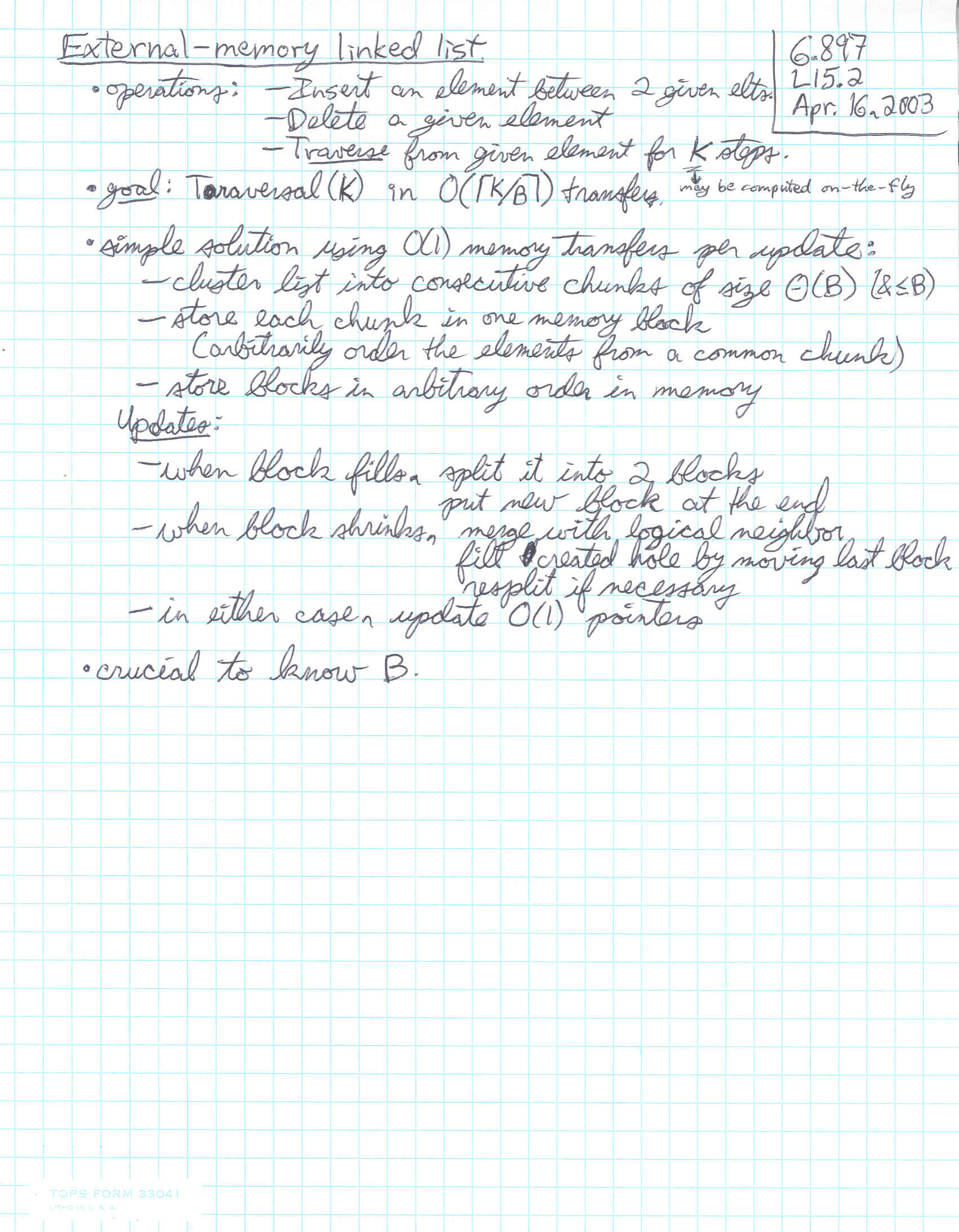 Details and justification of cache-oblivious model, external-memory linked lists, cache-oblivious linked lists