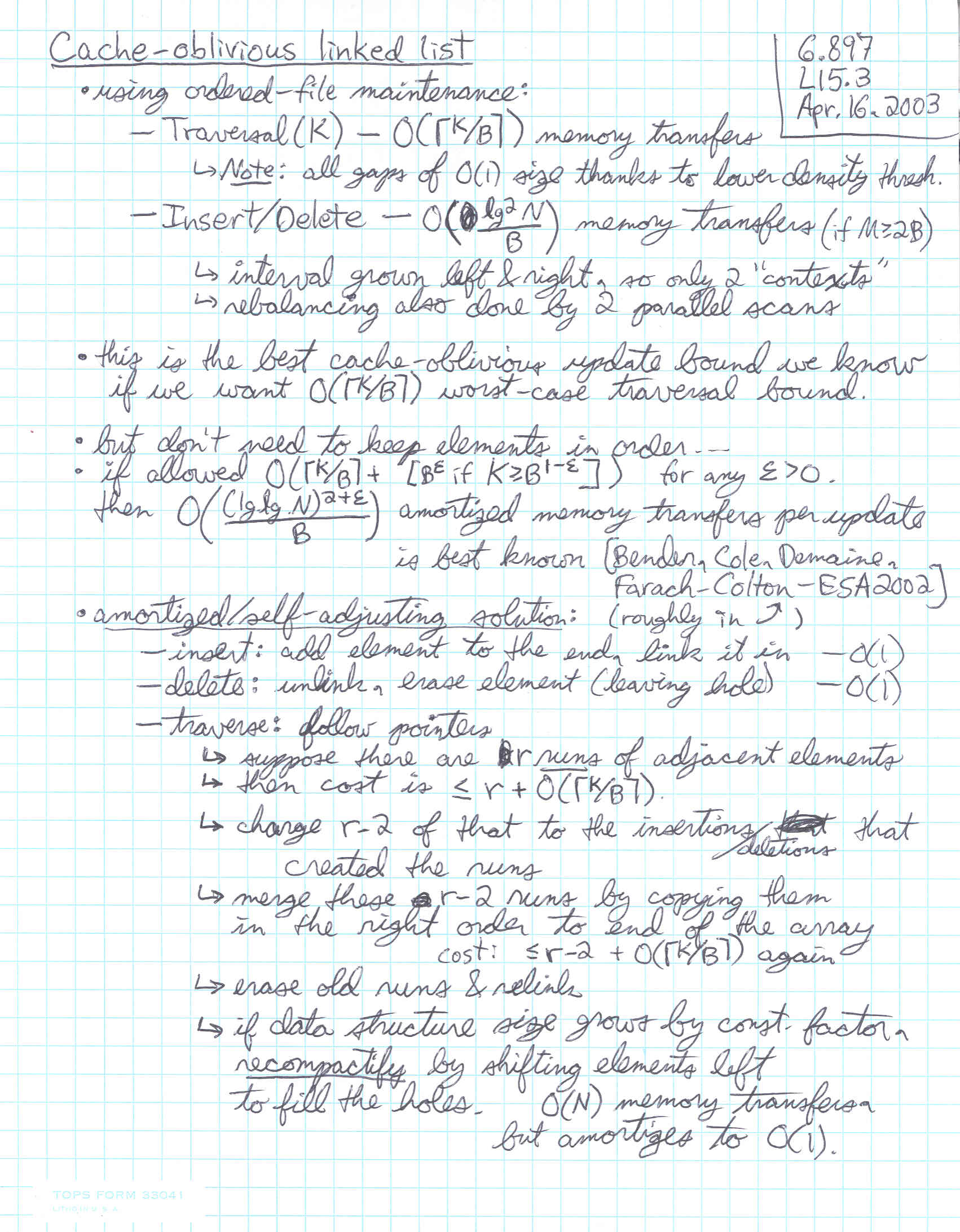 These are rough, personal lecture notes handwritten by Erik Demaine used during lecture. Their primary purpose is for reading/review by students before the scribe notes (which are more complete) become available. See the scribe notes page. Accessibility