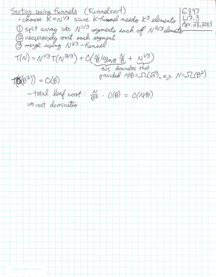 External-memory sorting, cache-oblivious sorting, Funnelsort, cache-oblivious priority queues, Funnelheap