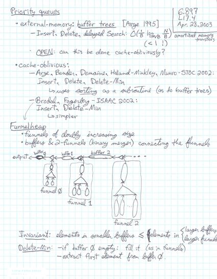 External-memory sorting, cache-oblivious sorting, Funnelsort, cache-oblivious priority queues, Funnelheap