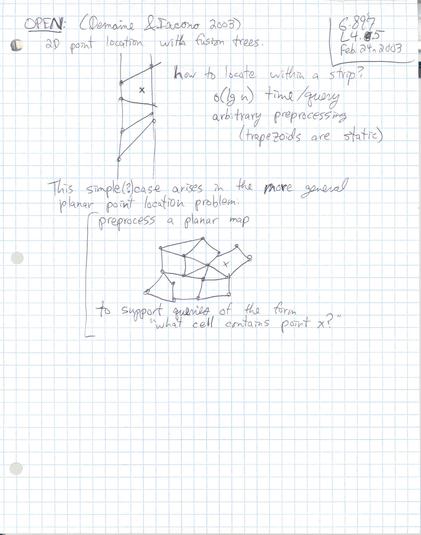 These are rough, personal lecture notes handwritten by Erik Demaine used during lecture. Their primary purpose is for reading/review by students before the scribe notes (which are more complete) become available. See the scribe notes page. Accessibility