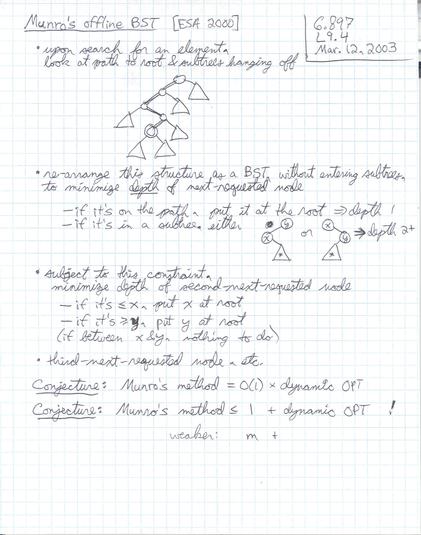 These are rough, personal lecture notes handwritten by Erik Demaine used during lecture. Their primary purpose is for reading/review by students before the scribe notes (which are more complete) become available. See the scribe notes page. Accessibility