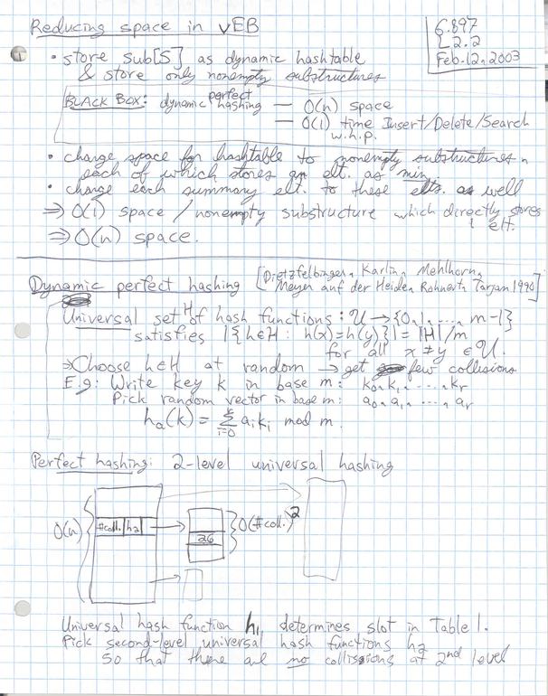 More van Emde Boas, reducing space, dynamic perfect hashing, y-fast trees, transdichotomous RAM