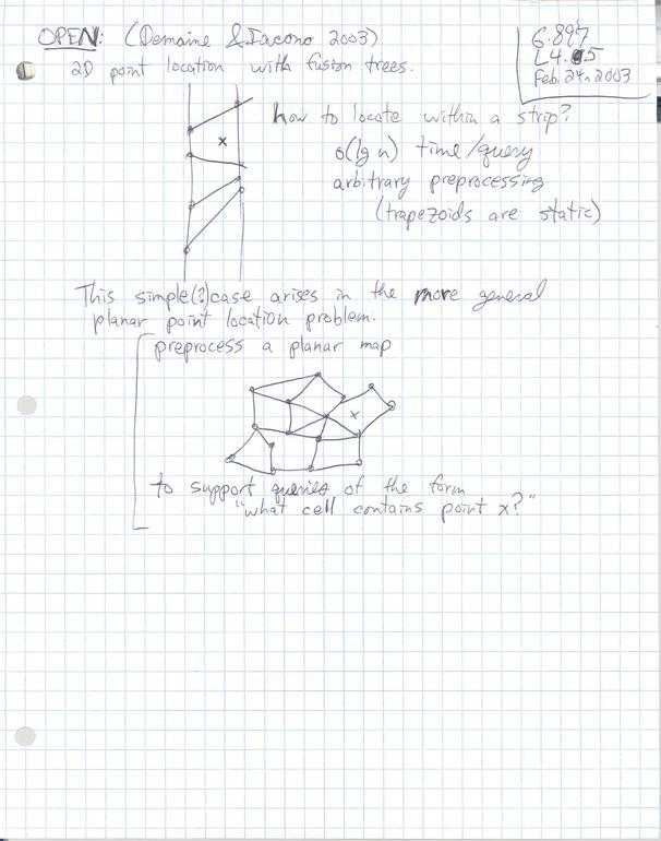These are rough, personal lecture notes handwritten by Erik Demaine used during lecture. Their primary purpose is for reading/review by students before the scribe notes (which are more complete) become available. See the scribe notes page. Accessibility