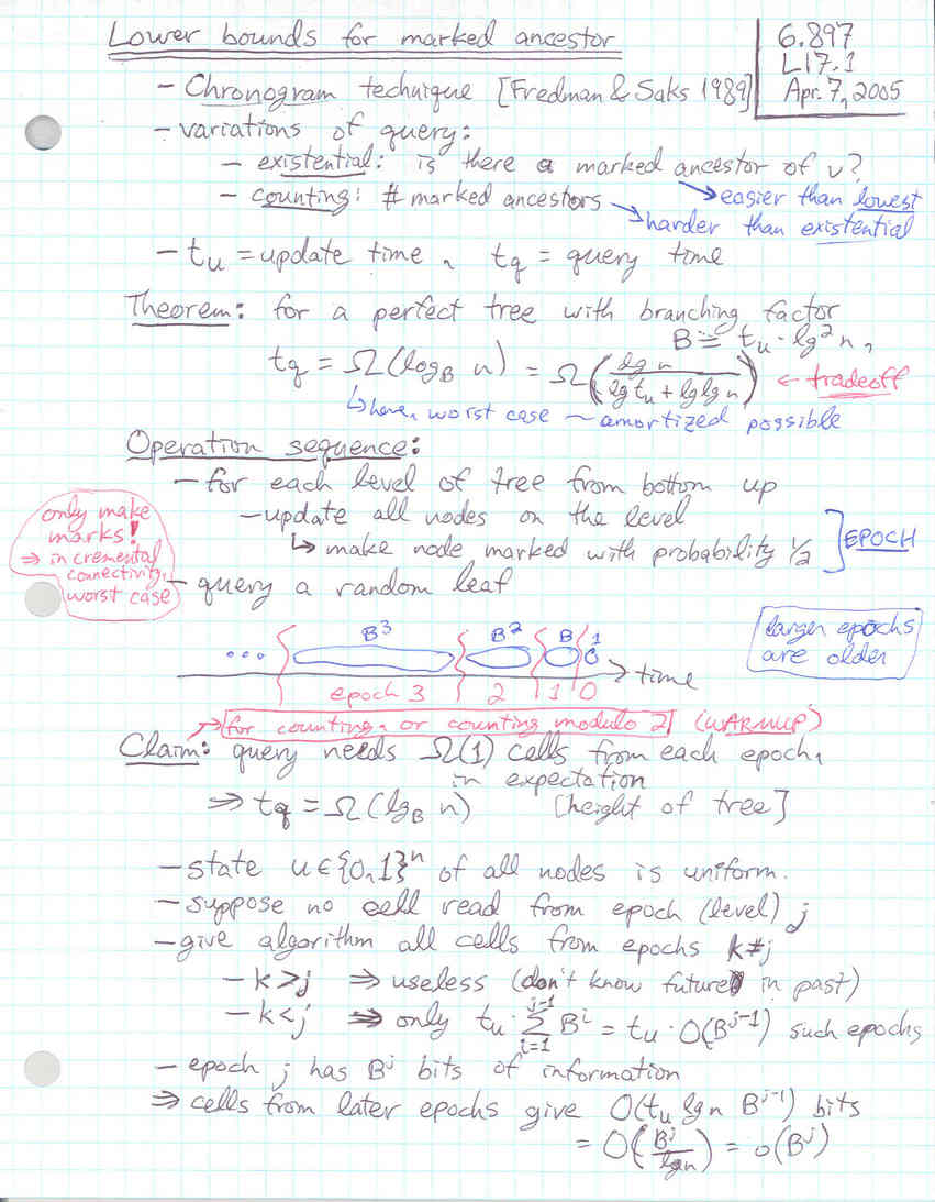 Lecture 17: Range queries and trees: Marked ancestor lower bound