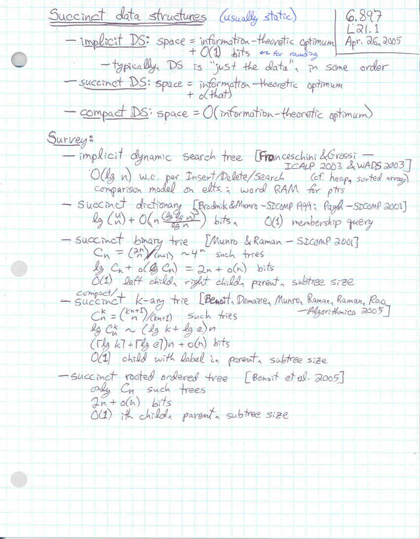 Lecture 21: Succinct data structures: rank, select, binary tries