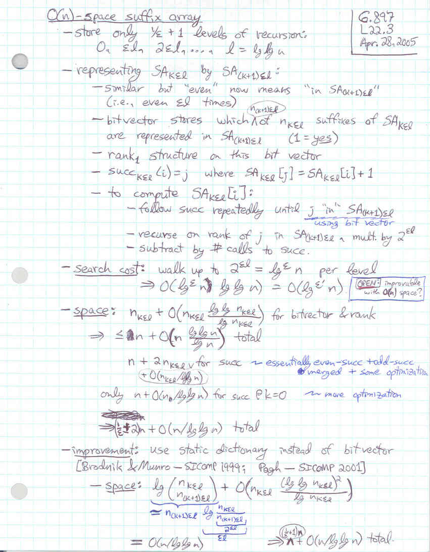Lecture 22: Succinct data structures: compact suffix arrays and trees