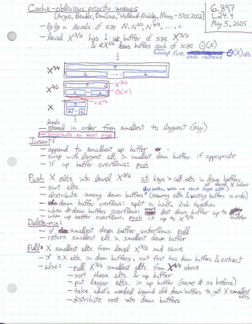 Lecture 24: External memory / cache-oblivious: Ordered file maintenance, list labeing and order queries, cache-oblivious priority queues