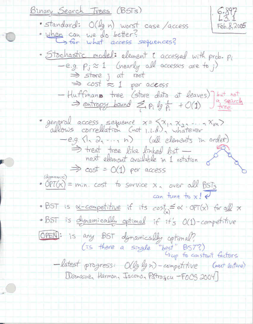 Lecture 3: Binary search trees: Splay trees, bounds, dynamic optimality conjecture