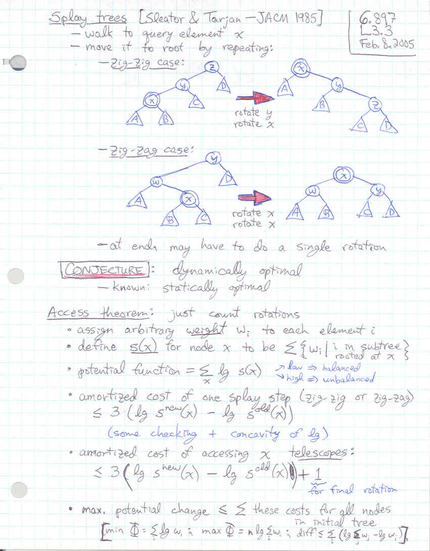 Lecture 3: Binary search trees: Splay trees, bounds, dynamic optimality conjecture