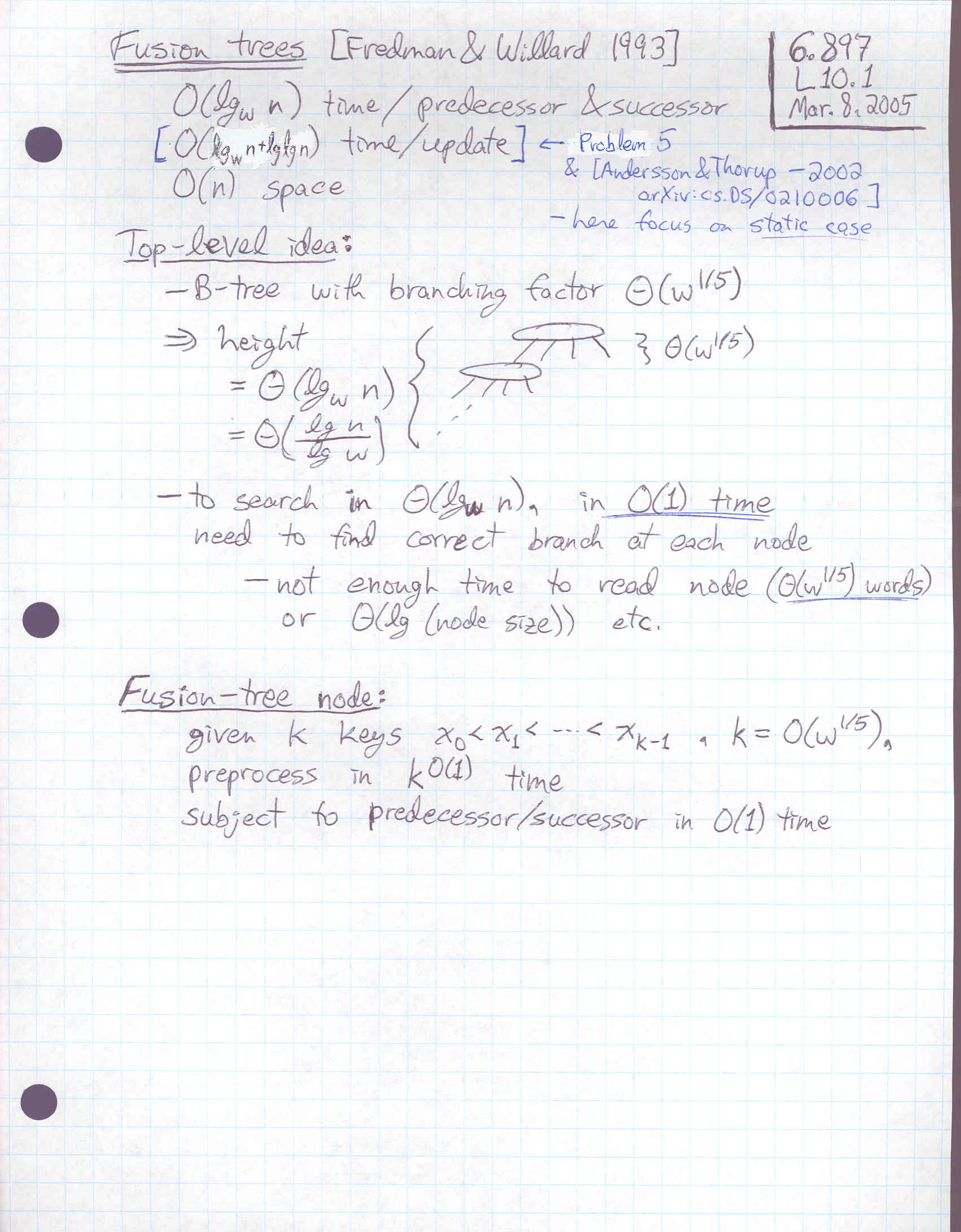 Lecture 10: Integers: Fusion trees