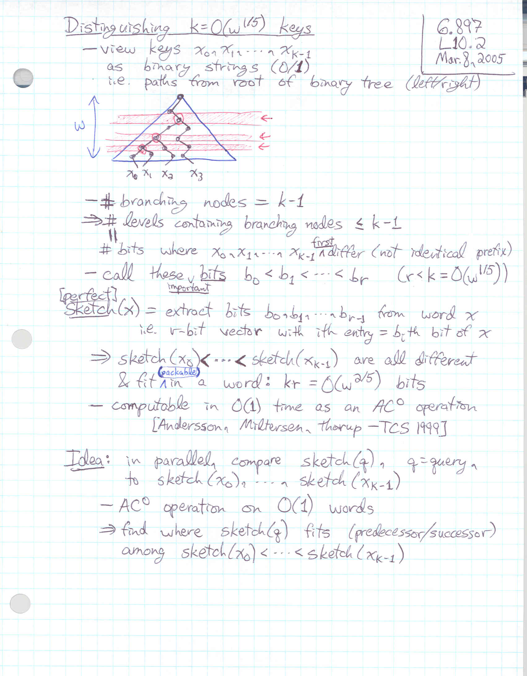 Lecture 10: Integers: Fusion trees
