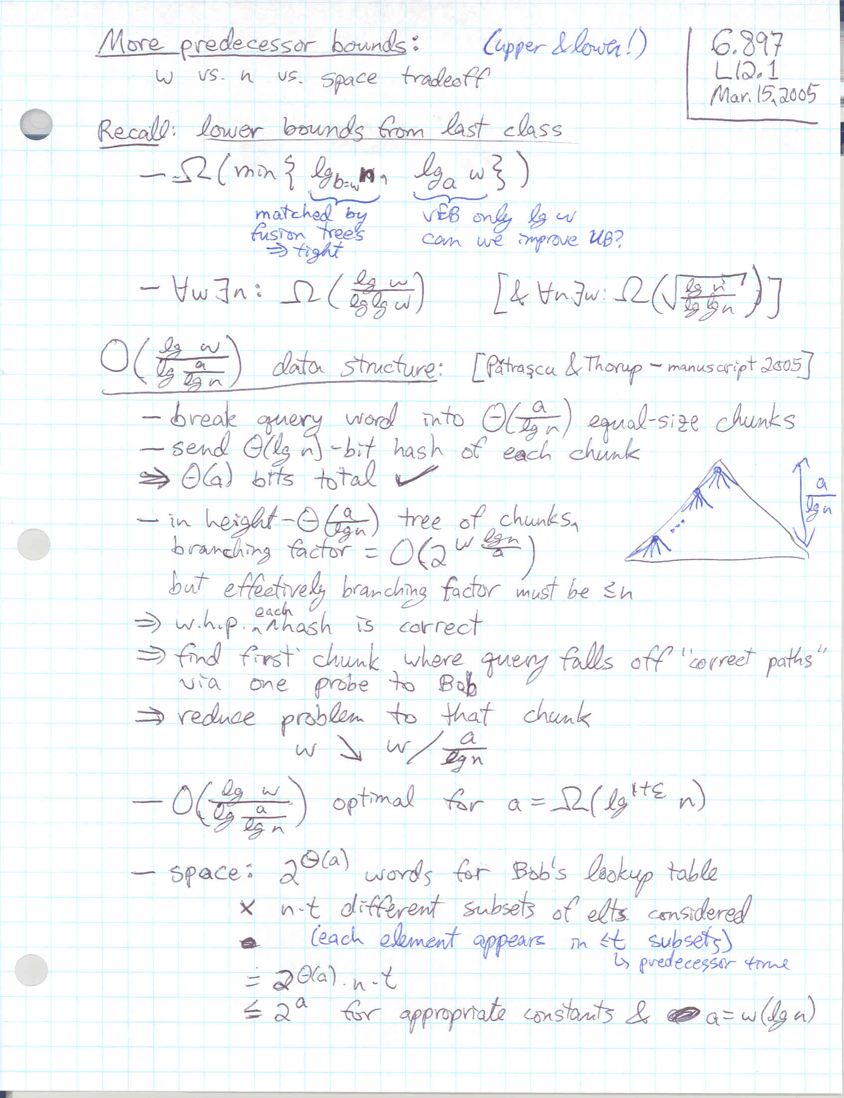 Lecture 12: Integers: Tight upper and lower bounds for predecessor via message compression