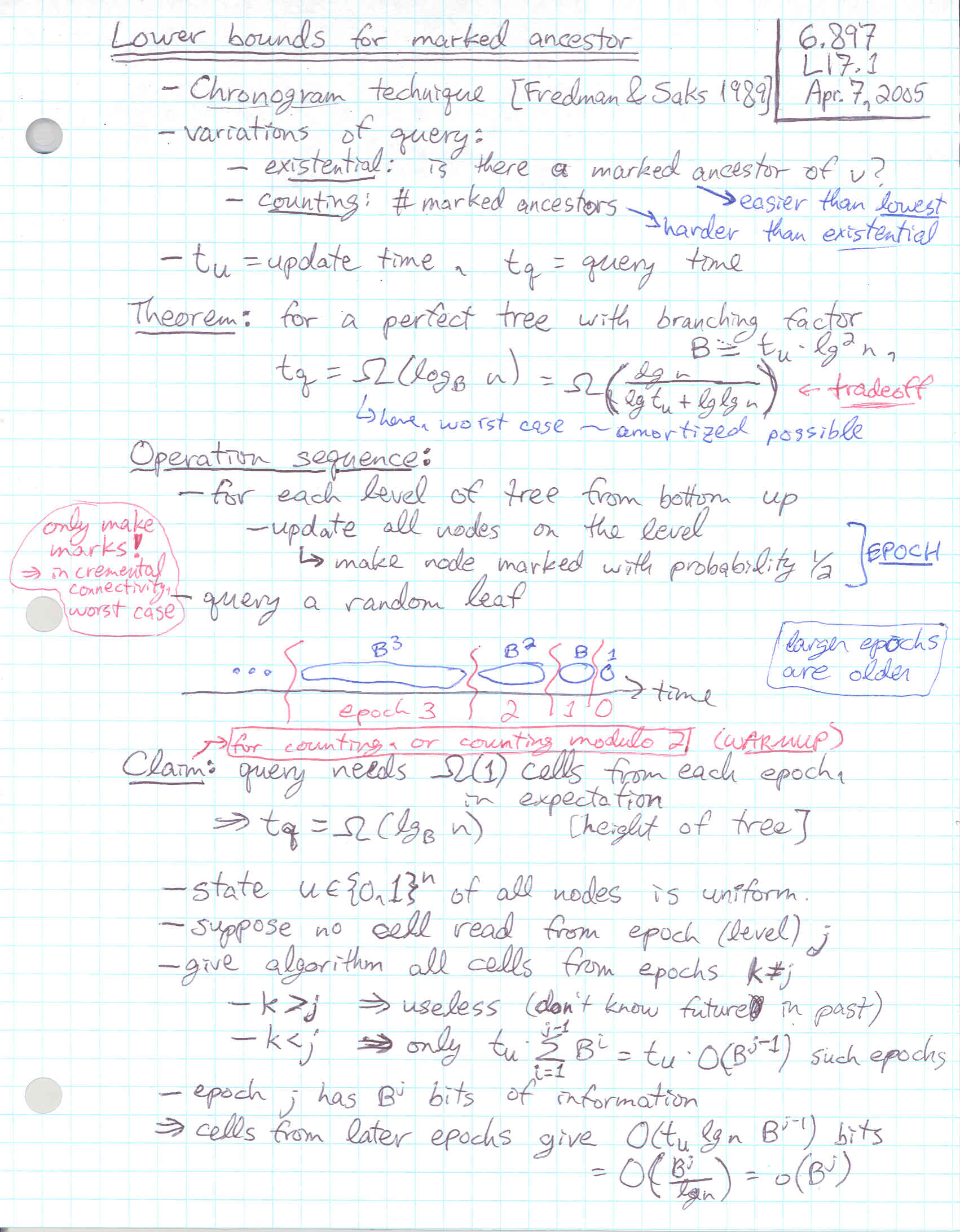 Lecture 17: Range queries and trees: Marked ancestor lower bound