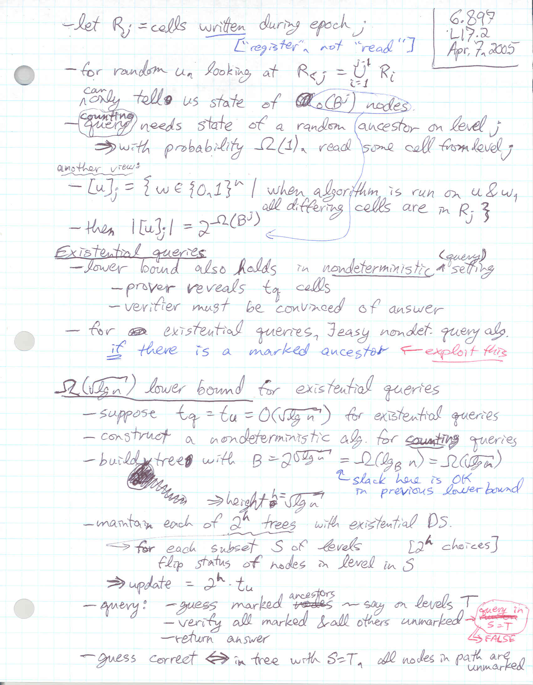 Lecture 17: Range queries and trees: Marked ancestor lower bound