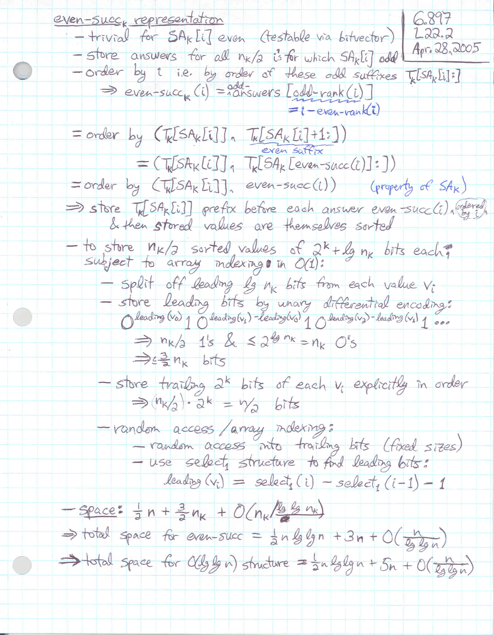 Lecture 22: Succinct data structures: compact suffix arrays and trees
