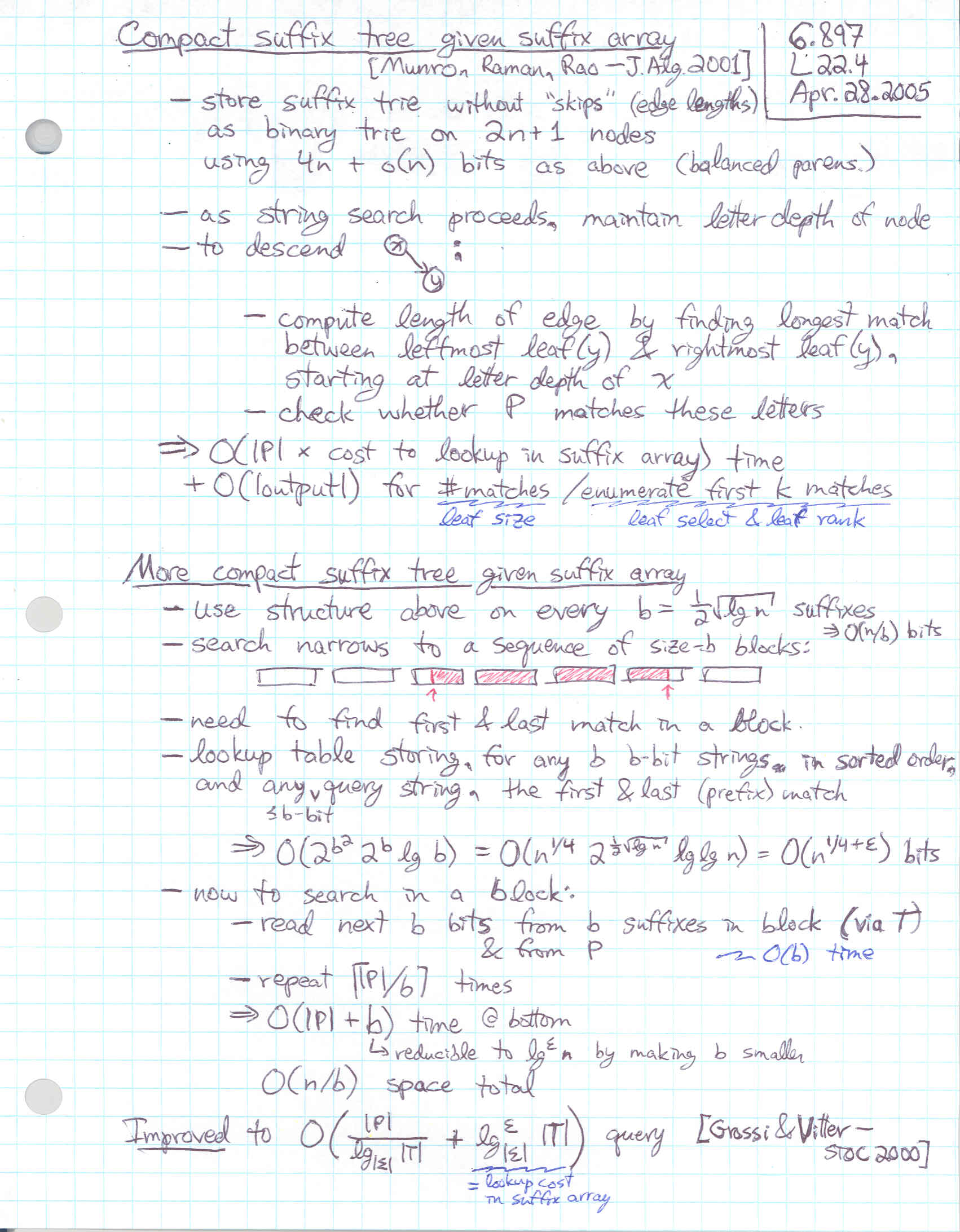 Lecture 22: Succinct data structures: compact suffix arrays and trees