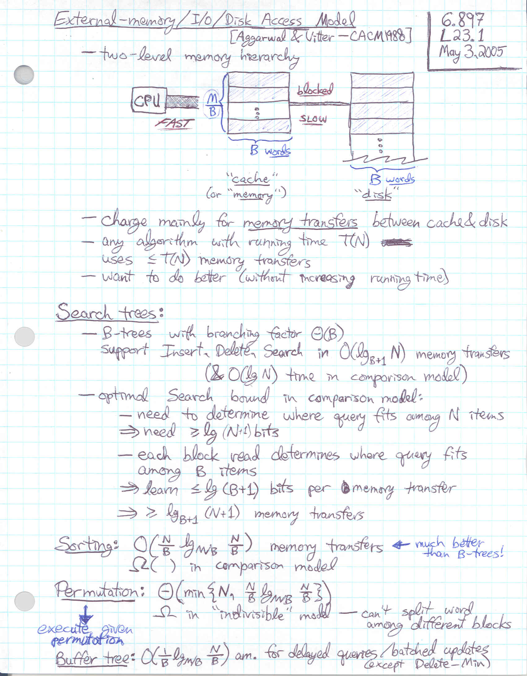 Lecture 23: External memory / cache-oblivious: cache-oblivious B-trees