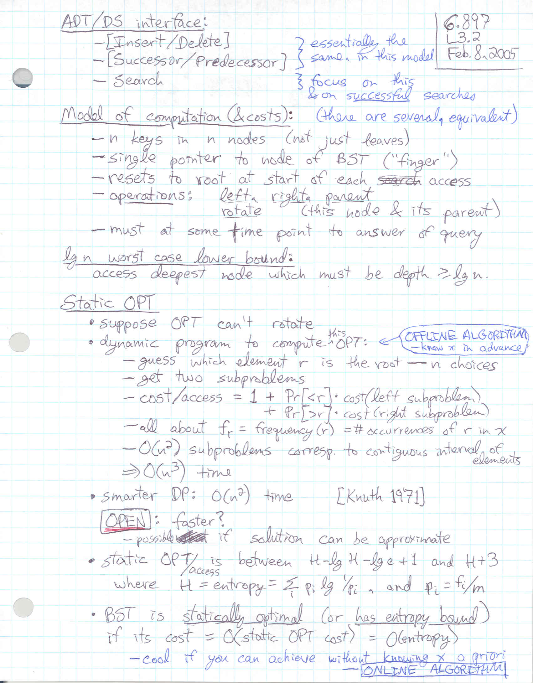 Lecture 3: Binary search trees: Splay trees, bounds, dynamic optimality conjecture