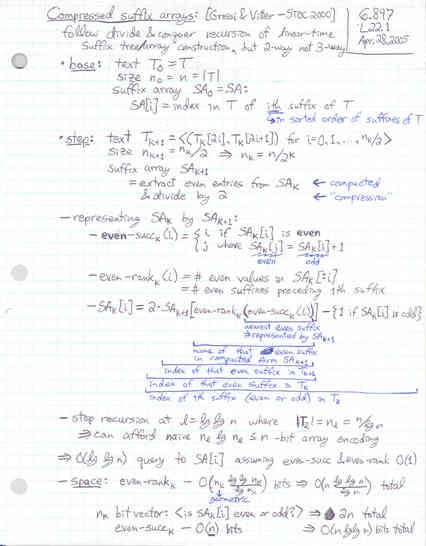 Lecture 22: Succinct data structures: compact suffix arrays and trees