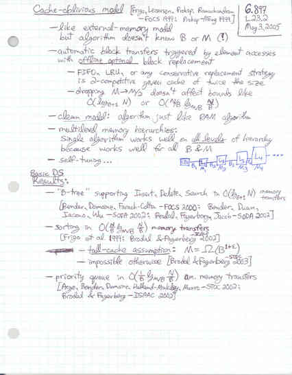 Lecture 23: External memory / cache-oblivious: cache-oblivious B-trees