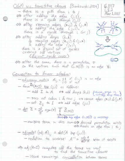 Lecture 8: Dynamic graphs: dynamic directed graphs and shortest paths, O(n2) worst-case dynamic transitive closure, dynamic matrices