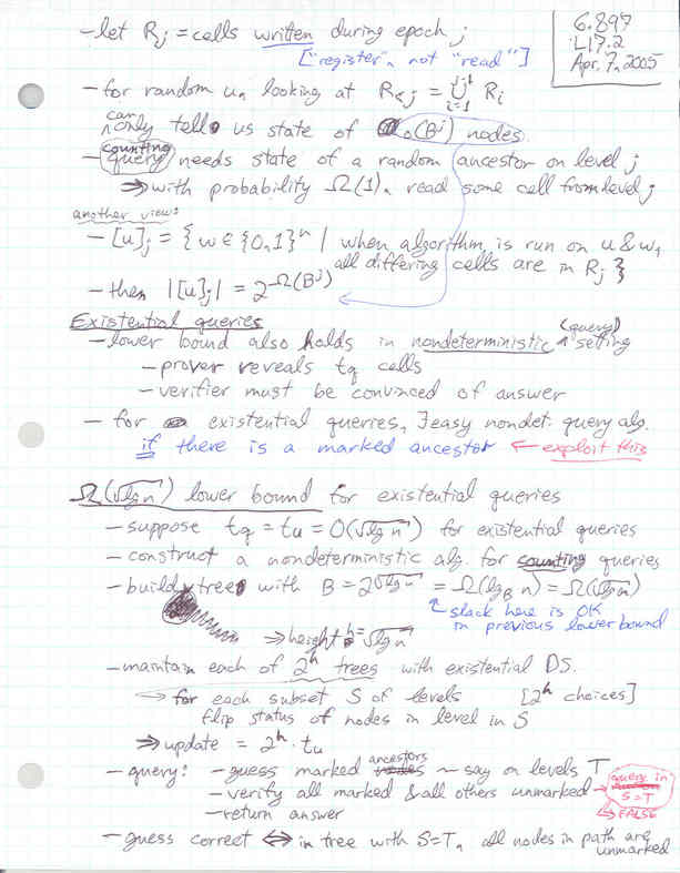 Lecture 17: Range queries and trees: Marked ancestor lower bound