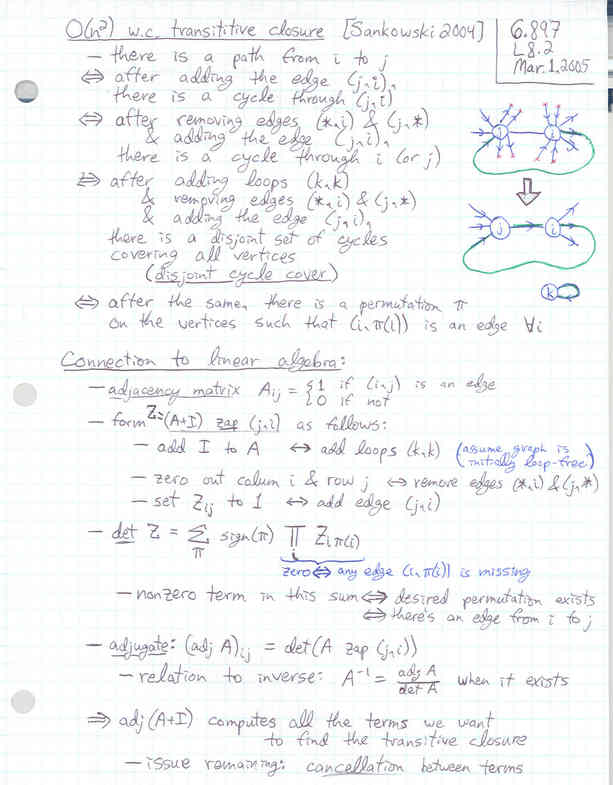 Lecture 8: Dynamic graphs: dynamic directed graphs and shortest paths, O(n2) worst-case dynamic transitive closure, dynamic matrices